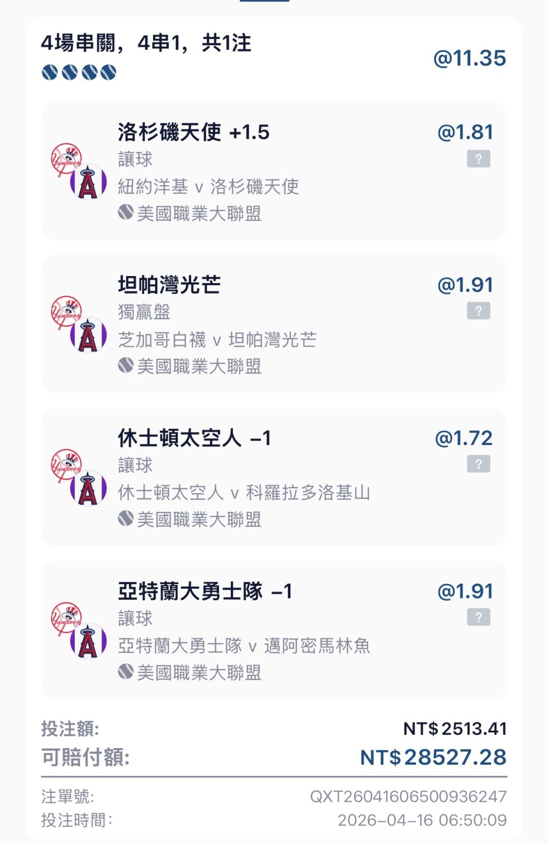 MLB >> 4/15 MLB⚾️昨天倒⋯今天繼續求反彈