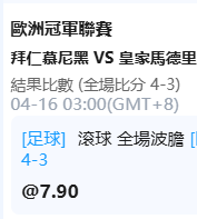 足球 >> 皇家馬德里@拜仁慕尼黑 方向參考~