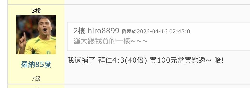 足球 >> 皇家馬德里@拜仁慕尼黑 方向參考~