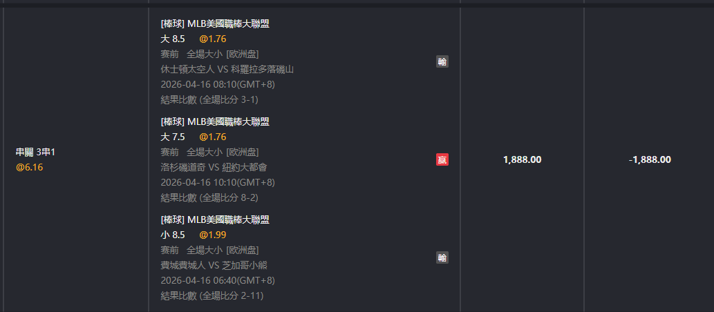 6過4 三串一收一串 感謝不讓我六單串在一起 多中了一個三串一