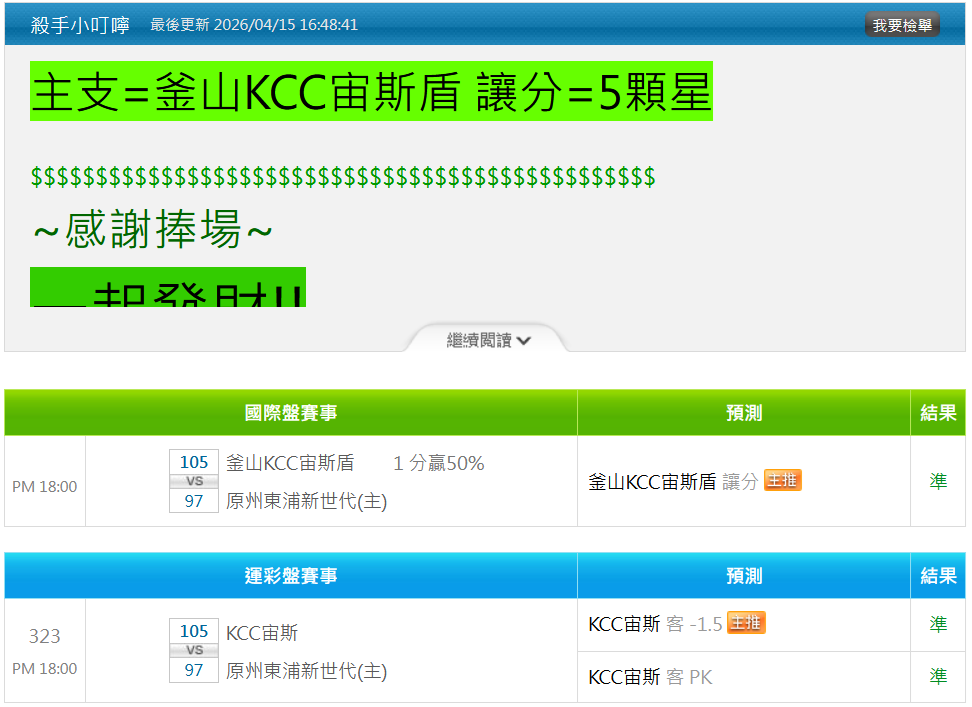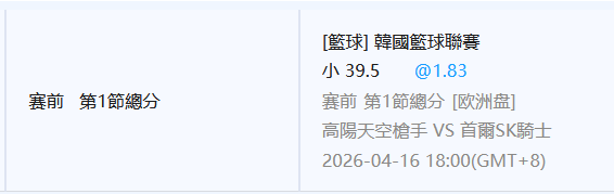 韓國職籃 >> 4/16【釘孤支過關】【3月獲利第7名】初盤分享+第一節小分推薦!