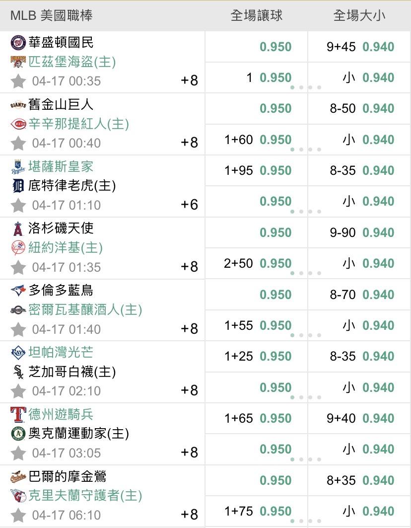 >> 4/17 美棒初盤(預祝過盤)