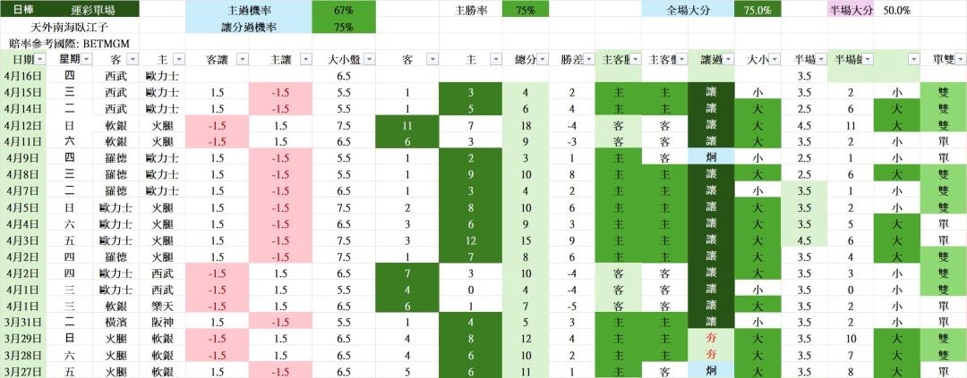 >> 4/16 日棒 運彩單場 西武 vs 歐力士