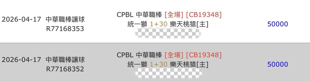 中華職棒 >> 中華職棒「釘孤枝 新台幣 10萬」統一獅 VS 樂天桃猿,上一個比賽日收釘孤枝10萬,豪爽
