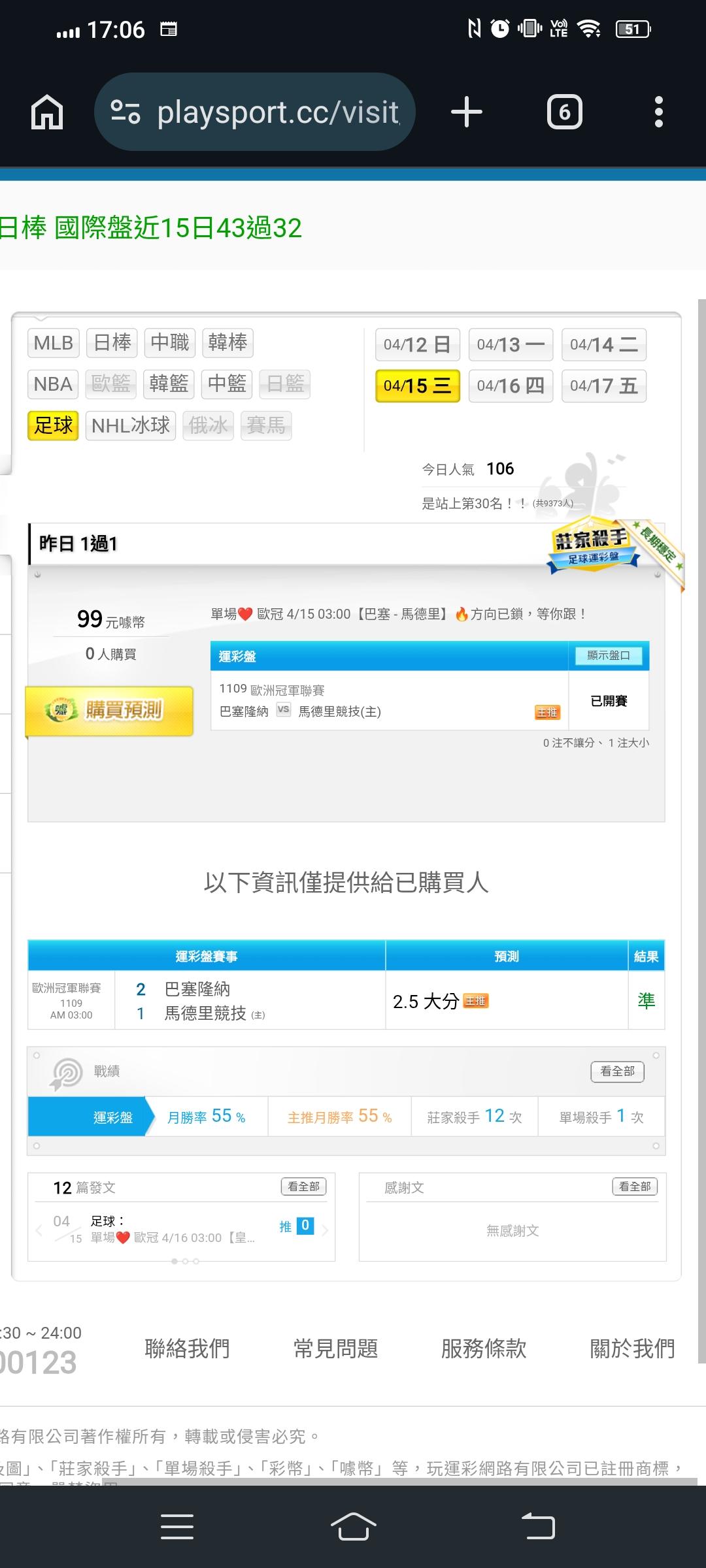 預測賽事