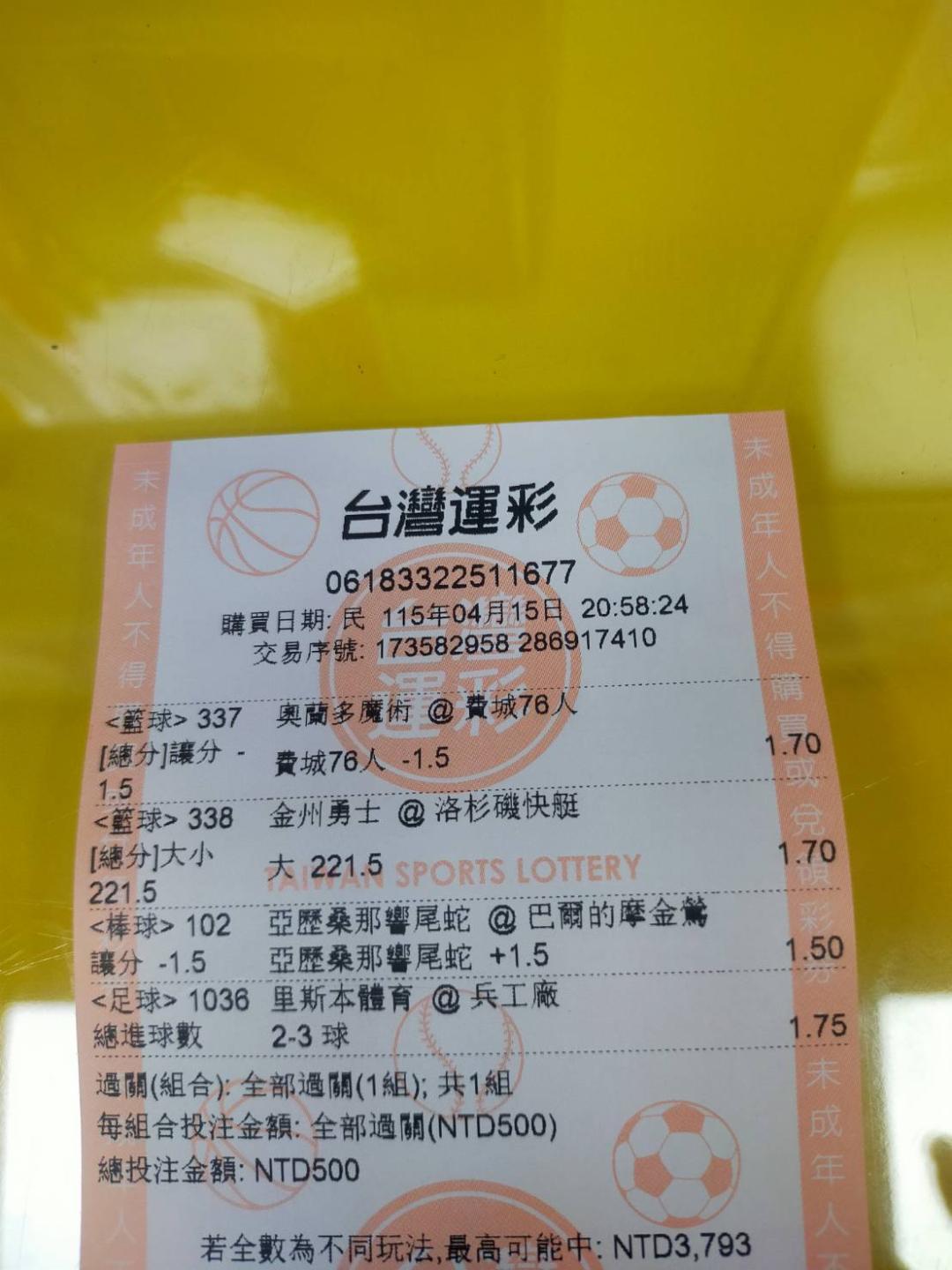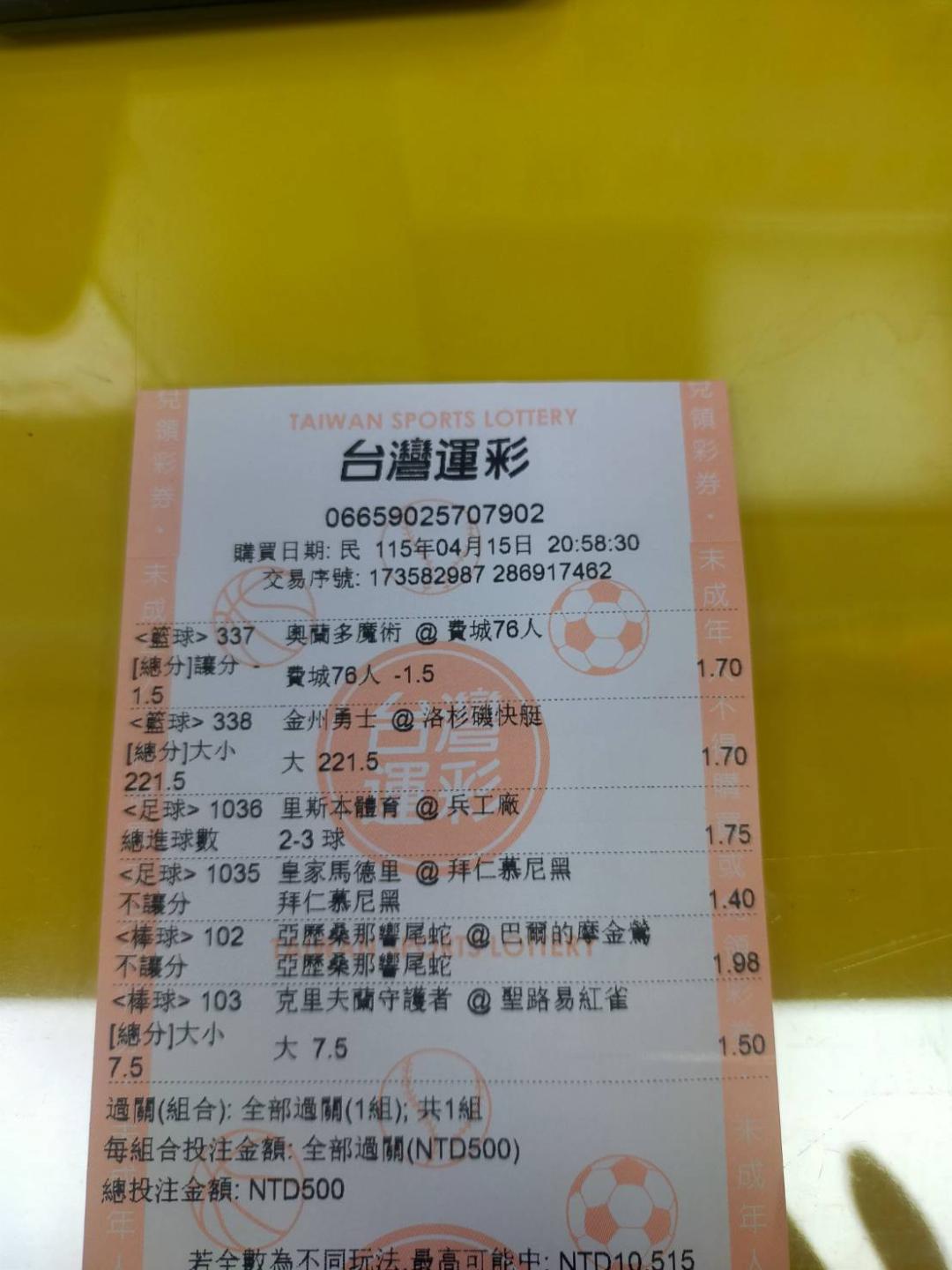 昨天買的球賽籃球棒球足球混合的就差那麼一關就可以賺一萬多塊,真的也是運氣問題而已