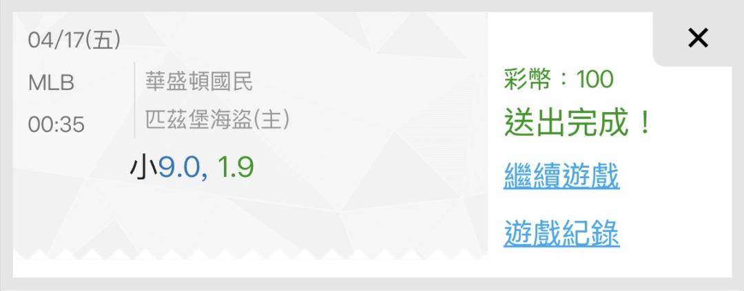 MLB >> 4/17 今天3過3全轟 國際主推4連勝 免費推一場 國民vs海盜場