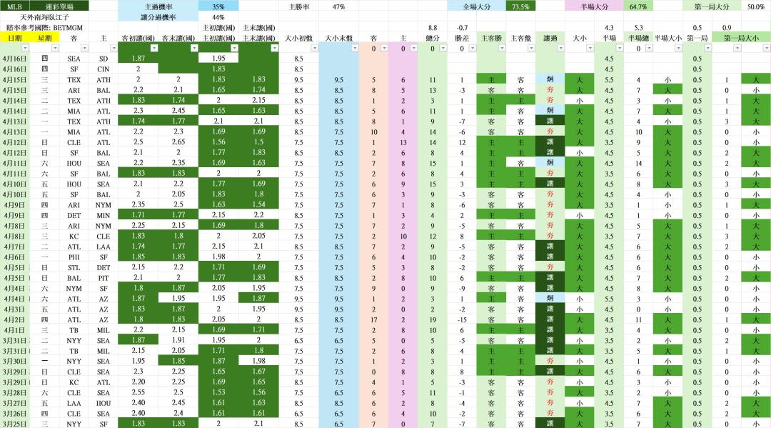 >> 4/17 MLB 運彩單場 SF vs CIN ( SEA vs SD )