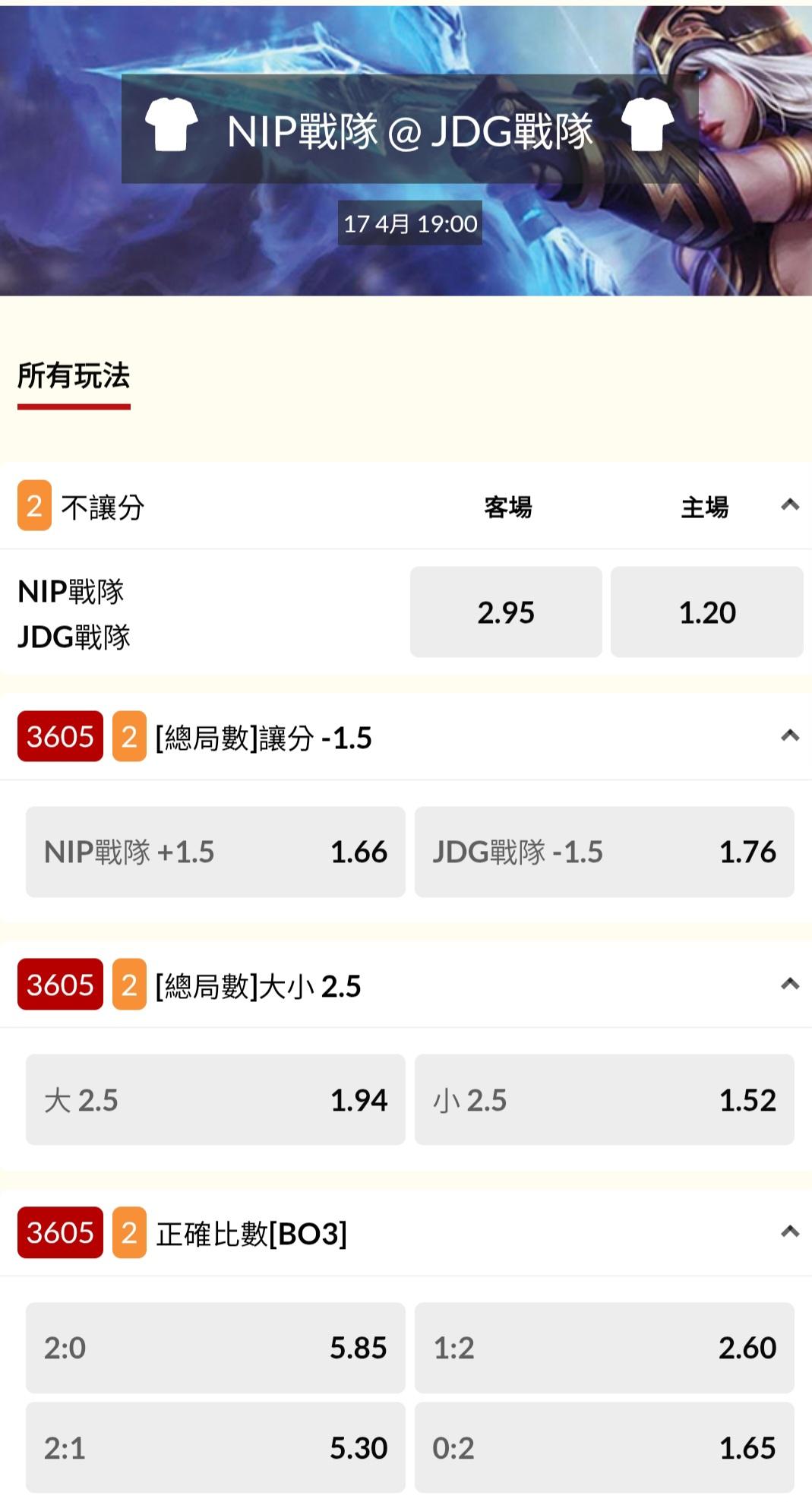電競 >> 04/17『OMG戰隊 @ TT戰隊』『JDG戰隊 @ NIP戰隊』