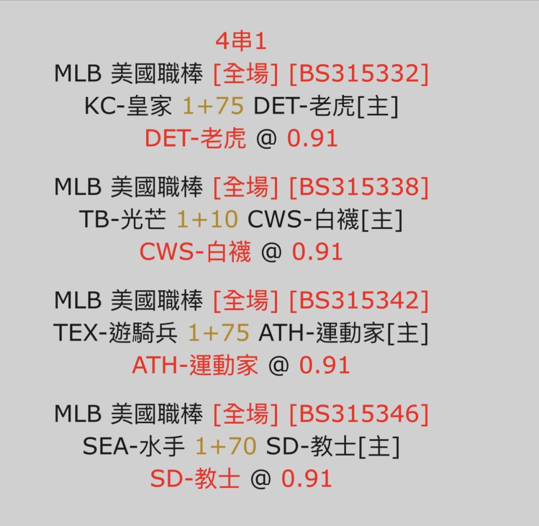 >> 4串1被道奇滿貫砲飛了~