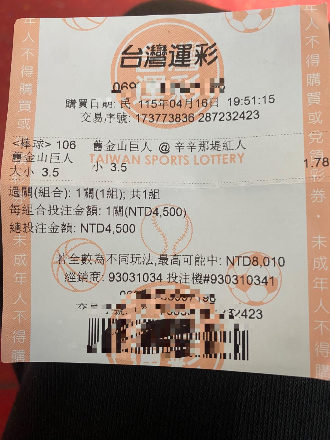 >> 半夜單場巨人3.5小收米八千.剛剛好打三分真爽