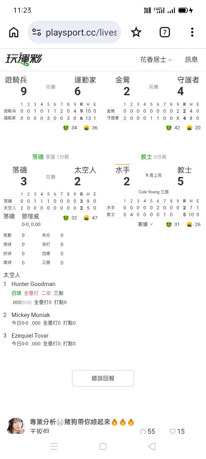 早上出門最後的兩場棒球小買400塊加減賺一下