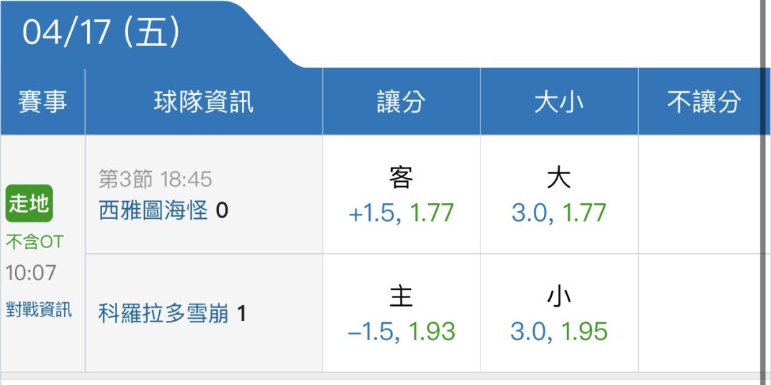 >> 冰球場中降到2.5大小買大跟足球降到0.5大小一樣無腦..