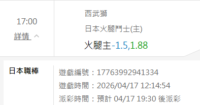 日本職棒 >> 4/17 NPB推薦【國際盤近9日 17過13】【內附台灣運彩單場】【小叮嚀有注數推薦】