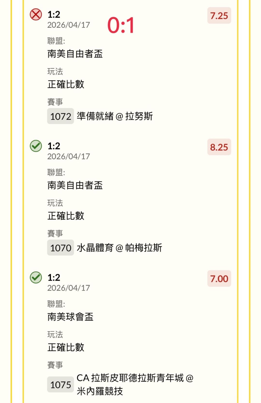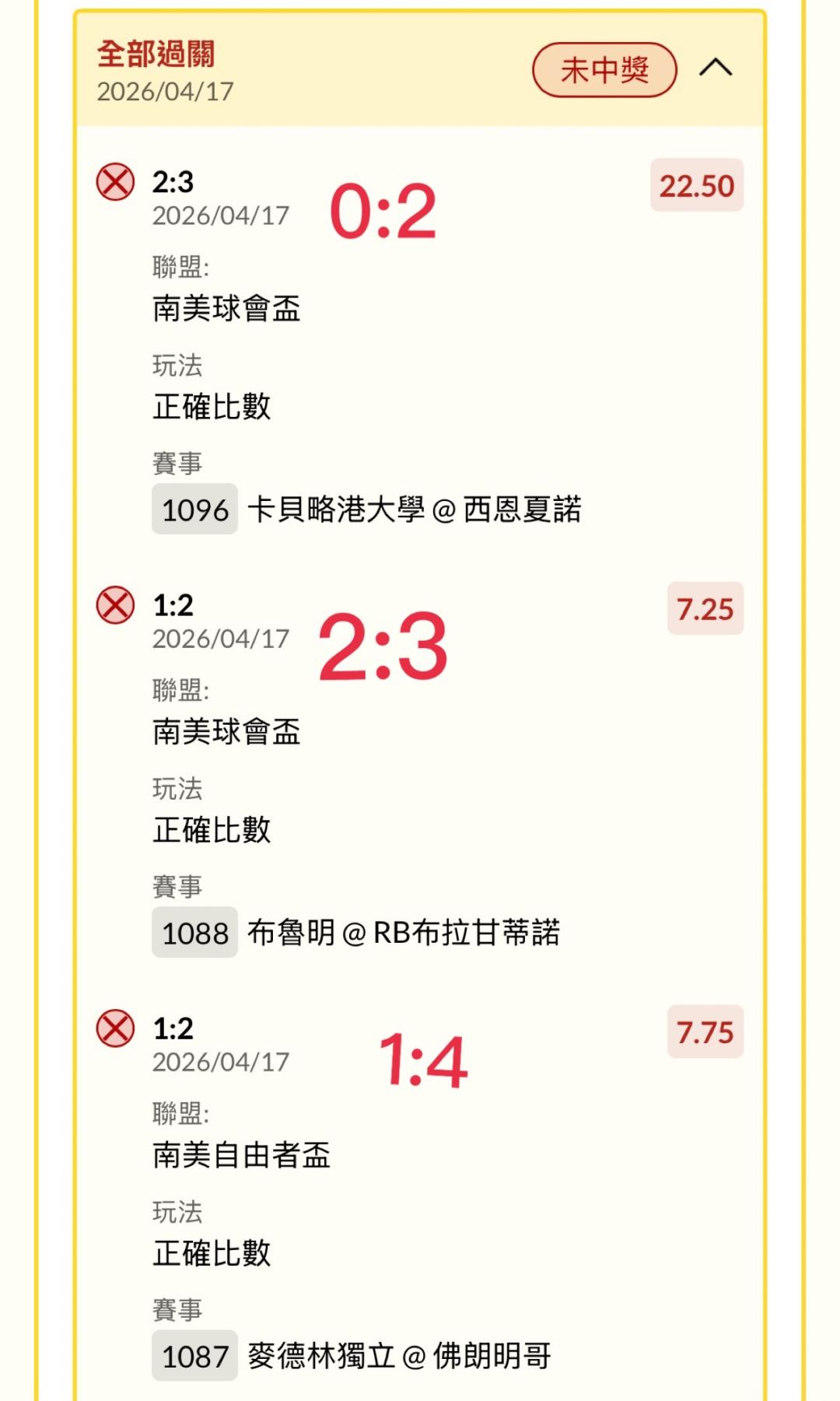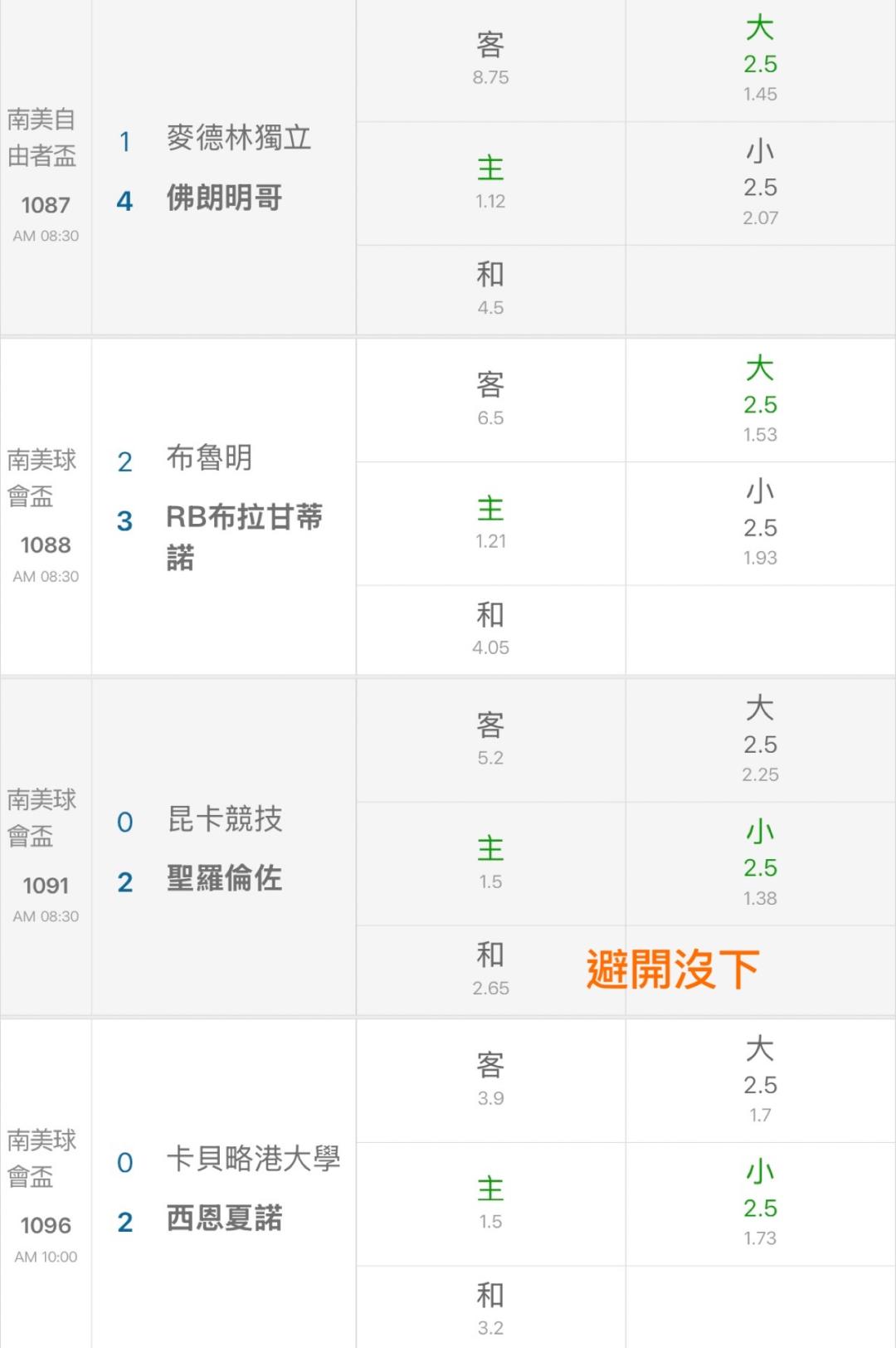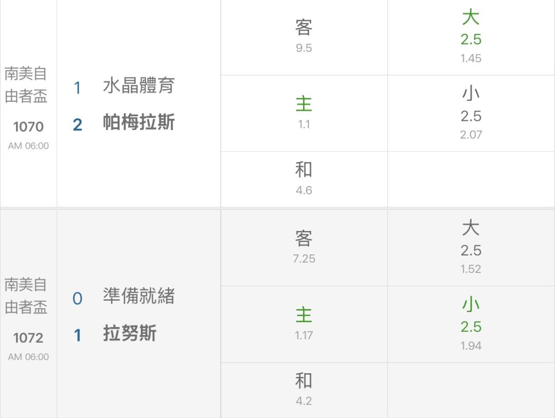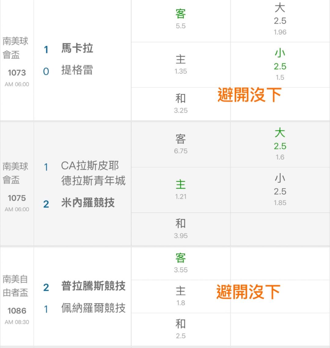 杯賽很看重主場,尤其南美跨國境的杯賽更是連和局都不多; 如果是以前的運彩,很好弄的是本國的杯賽,很多強隊不想在那裏耗,常常會第一場被三流球隊打和,第二場乾脆放給他爆冷輸; 不過版主能抓這樣,真的是很有水準,讚!
