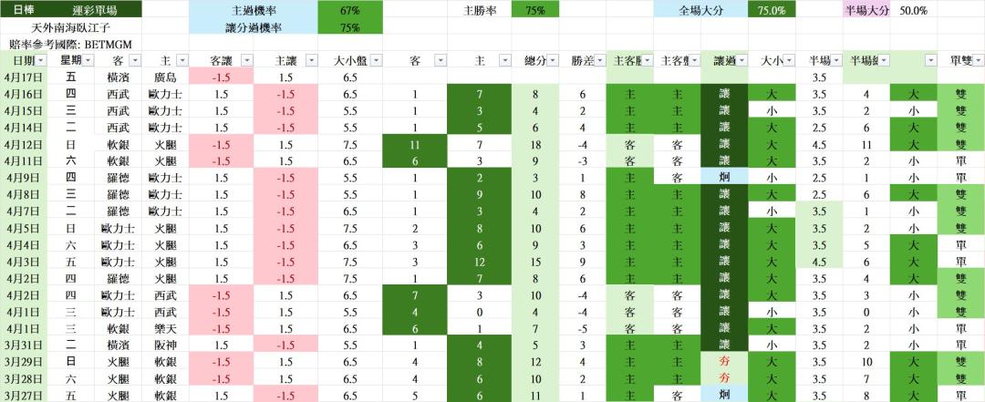 >> 4/17 日棒 運彩單場 橫濱 vs 廣島