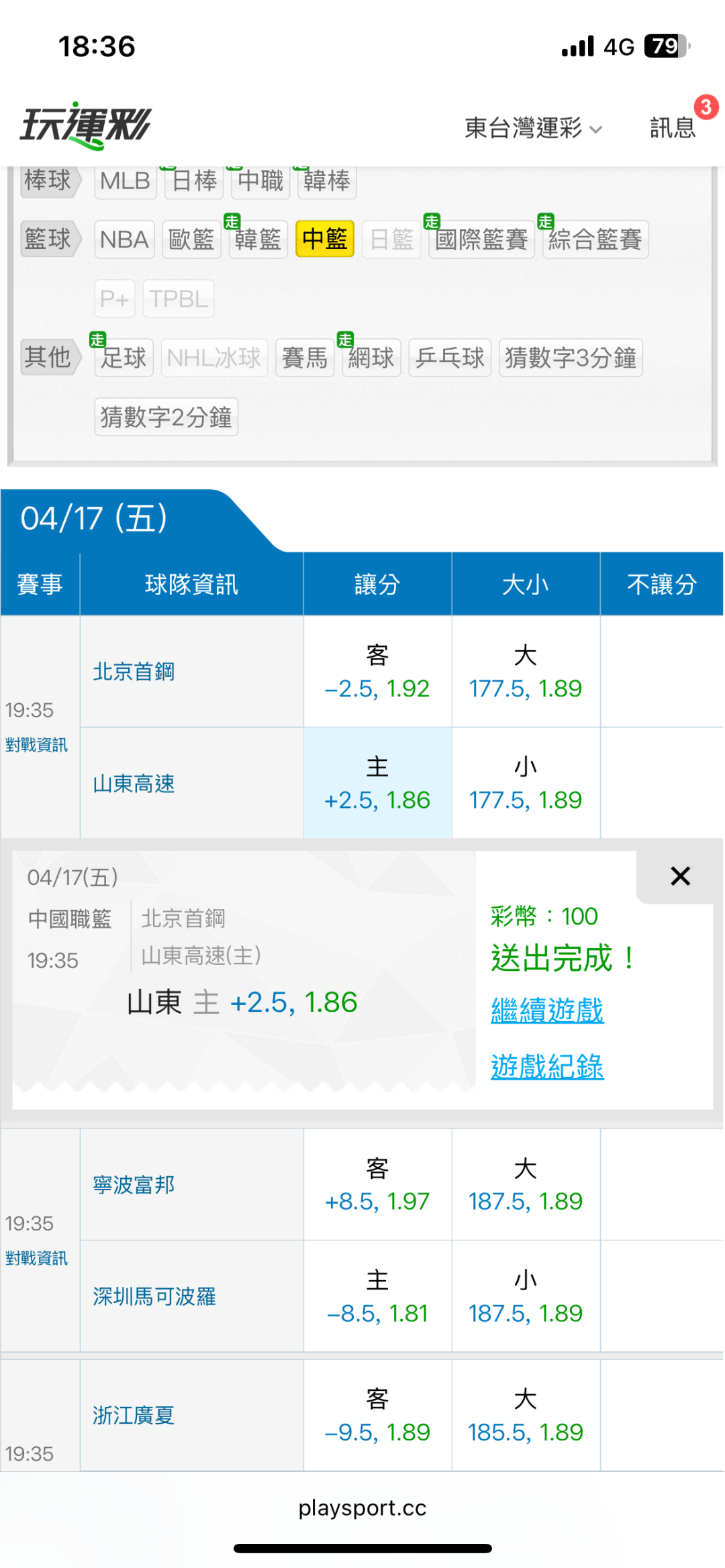 中國職籃 >> 4/17東台中籃國際盤【近31日贏22日】主推信心滿滿(貓場)特價用完了 喜歡的跟上東台~