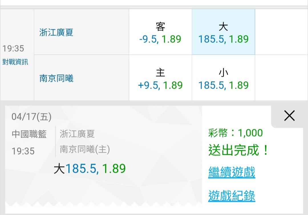 中國職籃 >> 昨天主推又贏錢了……今天也是主推一場