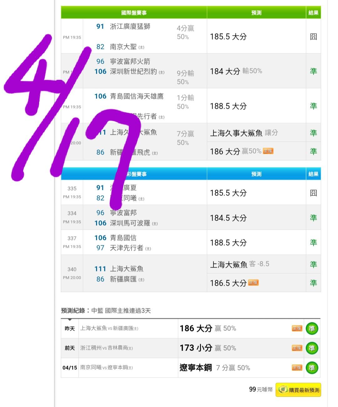 中國職籃 >> 昨天雙盤10過8收雙主推……主推3連勝了今天拼4連勝