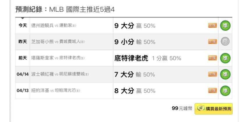 MLB >> 主推5過4,今日5過5全轟