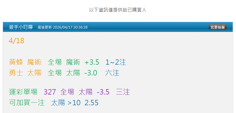 小叮嚀有兩場高信心推薦