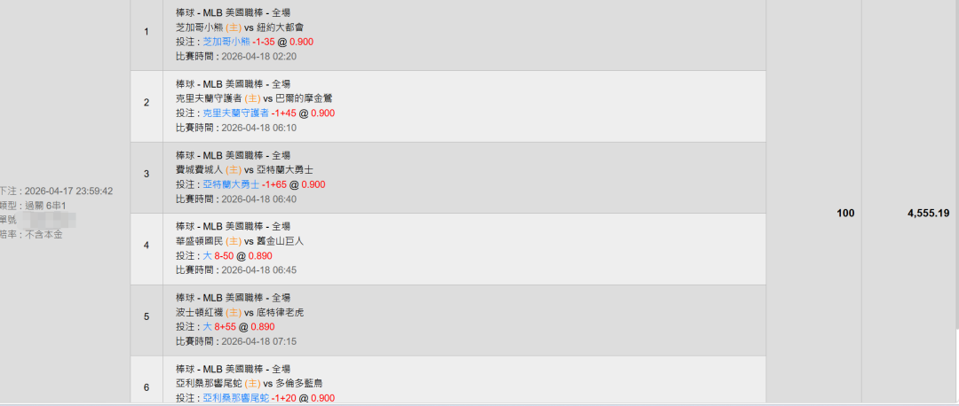 4/19 MLB 6*1 分享!喜歡的朋友請隨意享用!祝大家都能順利過關!!!