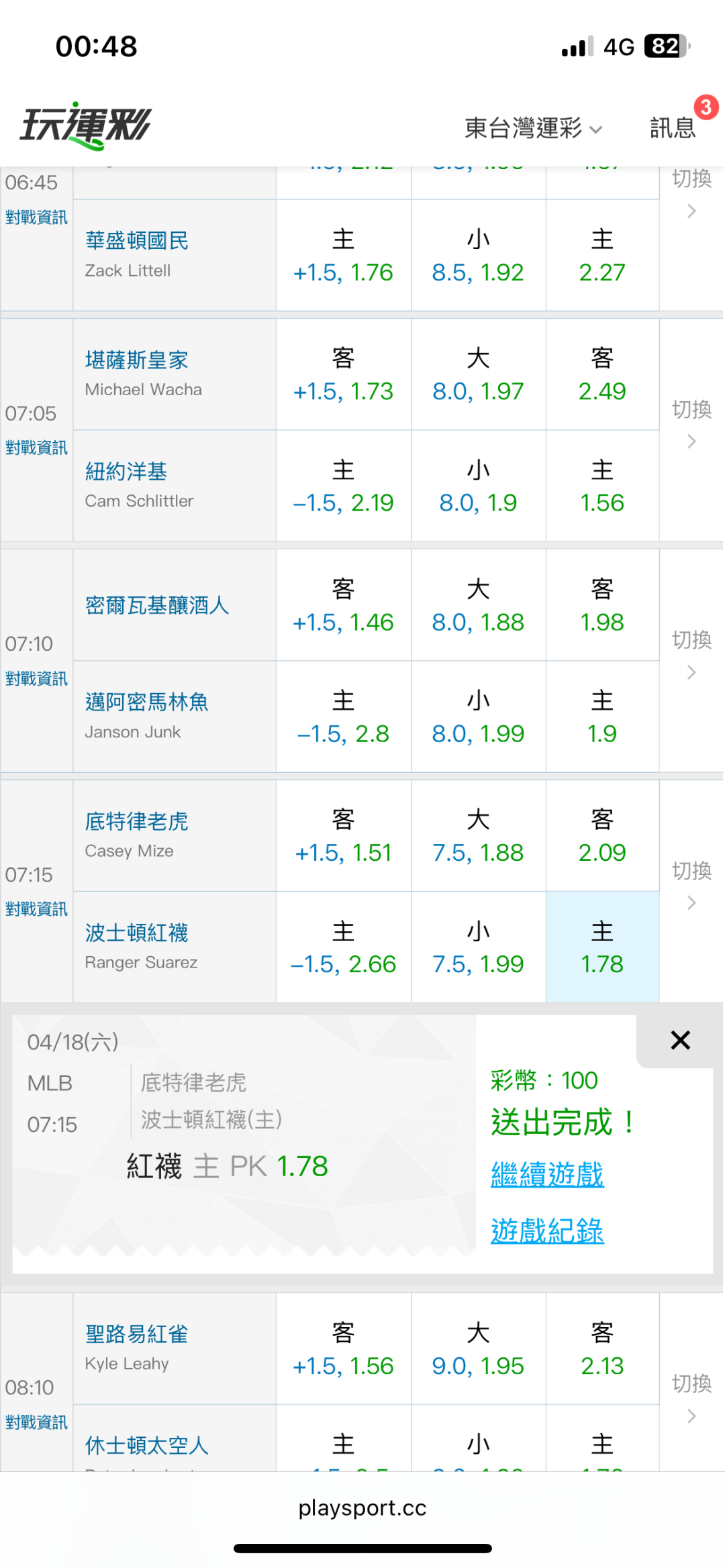 >> 4/18東台MLB國際盤【主推近7日過5】【主推連過2日】-拼MLB國際盤主推連過3日~