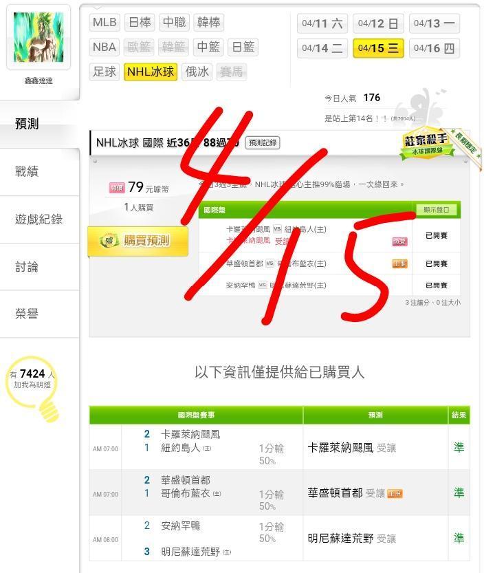 NHL冰球 >> 🔥🔥買牌要找近況好的,連4天全贏8過8,明日一場輸贏,信心主推99%貓場,一次綠回來。