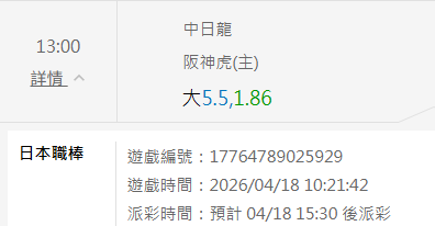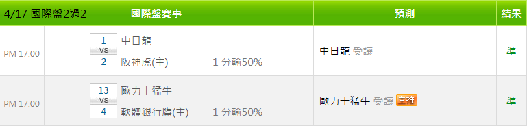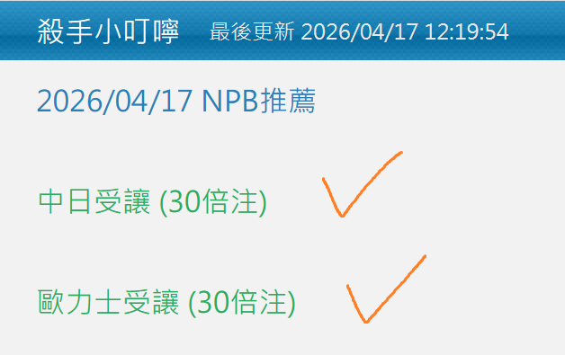 日本職棒 >> 4/18 NPB推薦【國際盤近10日 19過15】【昨日國際盤 2過2】【內附台灣運彩單場】
