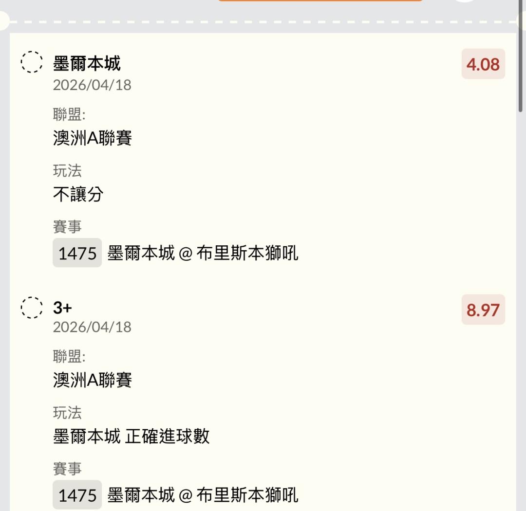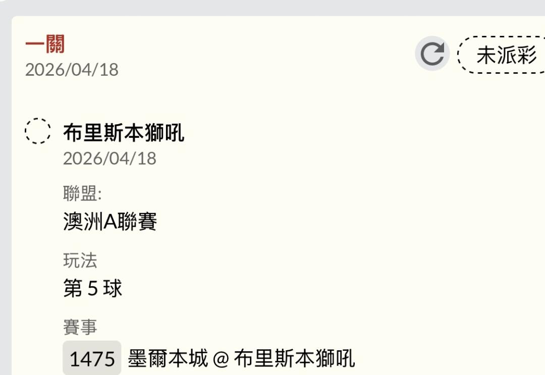 足球 >> 澳A 15:00單場