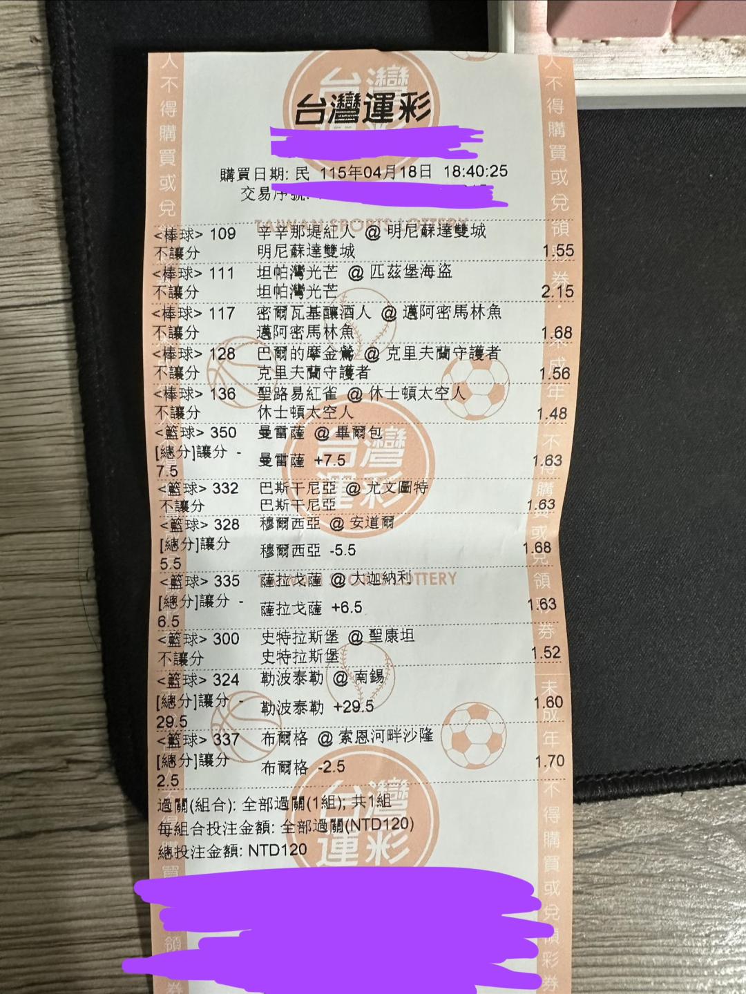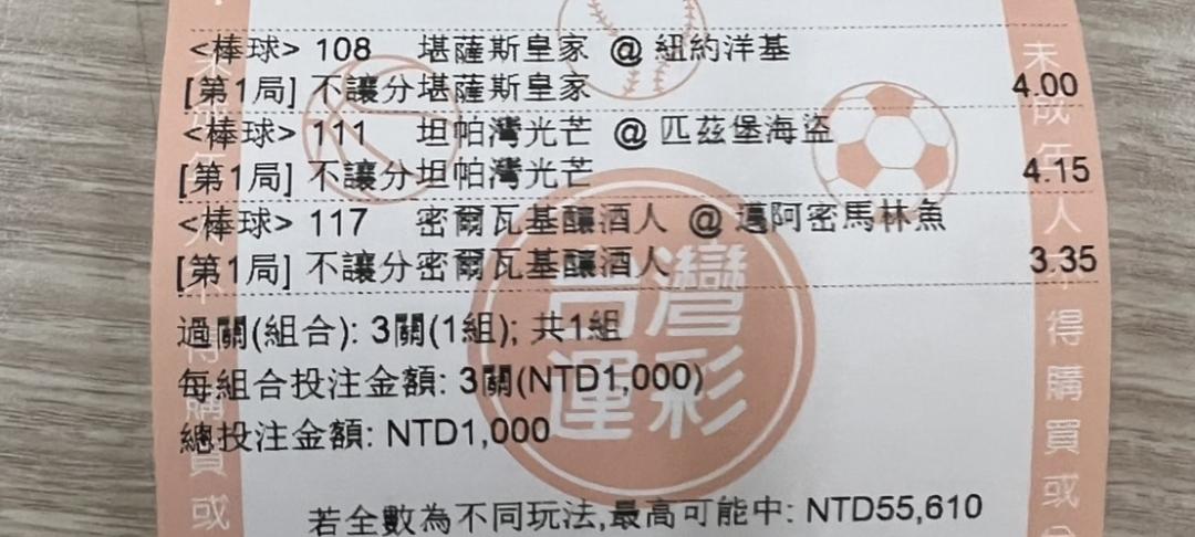 上週第一次過四關高賠跟二關高賠(共六場分二張,沒有下六x1)