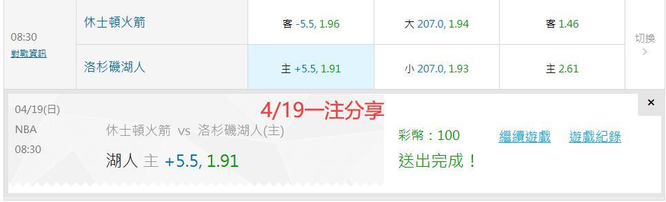 >> 🏀4/19 NBA 29级大神 國際主推近7過6💖💖💖