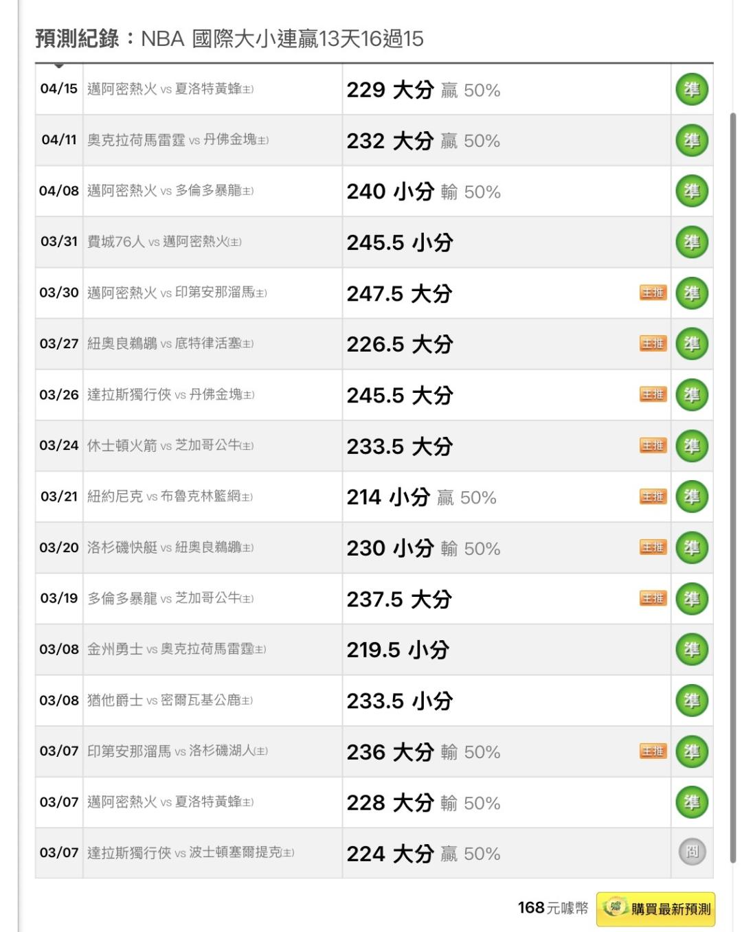 NBA >> 🔥國際大小連贏13天16過15🔥國際近25日55過38🔥國際主推近22過16日🔥強力主推 信者上車