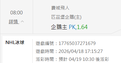 NHL冰球 >> 4/19 冰球推薦【上期國際莊殺第2名】【國際盤近41日 87過69】【免費場歡迎參考】