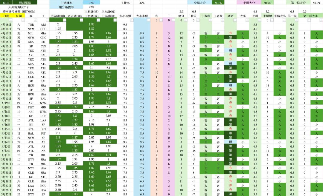 >> 4/19 MLB 運彩單場 NYM vs CHC ( TOR vs ARI )