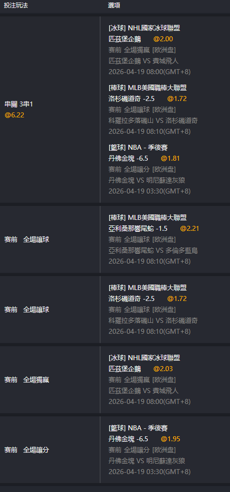 金塊讓*道奇讓*企鵝獨贏 3*1