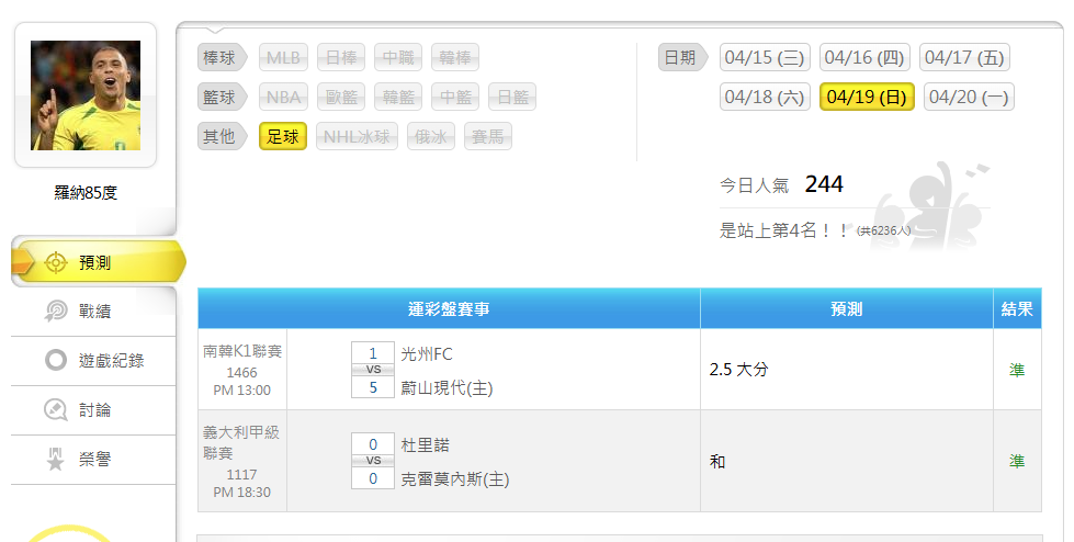 足球 >> 4/19 滾球+威剛單場~