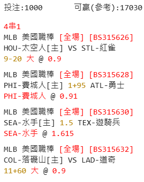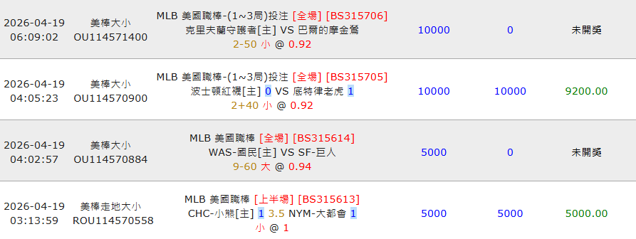 開打了 做個紀錄...賽前下注,來不及發文
