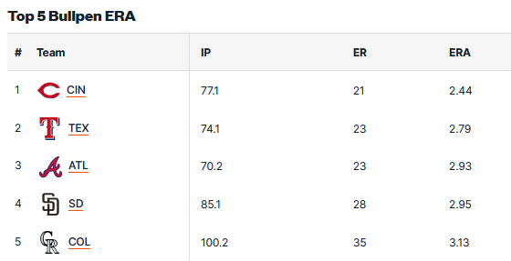 落磯的後援目前有在聯盟前5水準