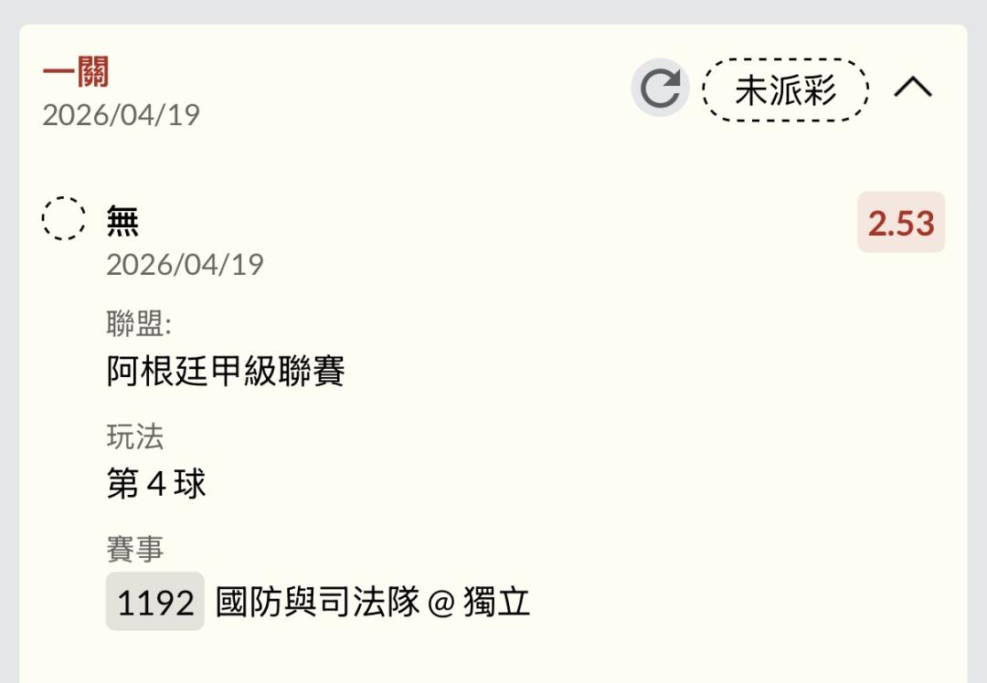 足球 >> 阿甲 單場