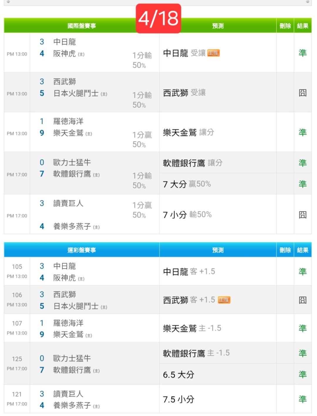 日本職棒 >> 公主小妹的日棒,國際讓分連贏8天27過23,國際盤連贏2天9過7,支持公主,贏錢為主❤️