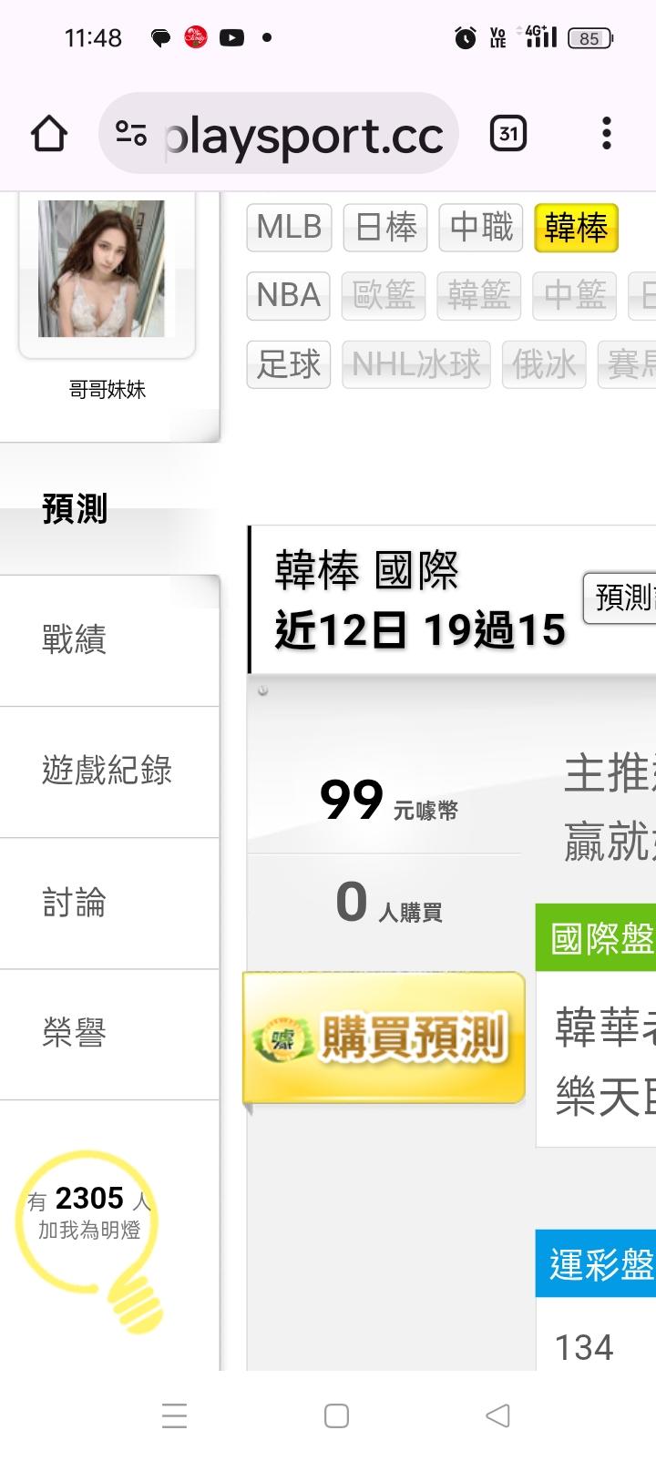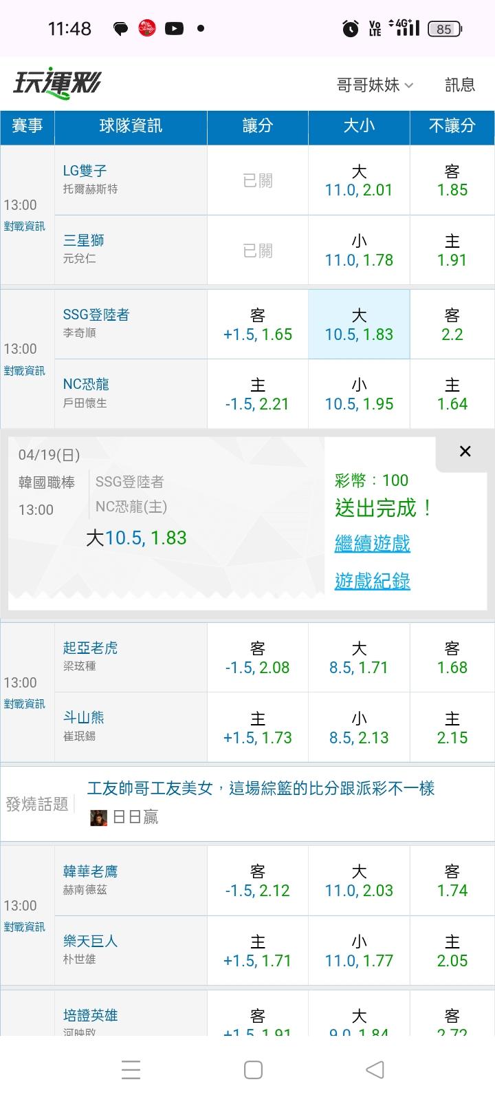 韓國職棒 >> 主打場次又贏錢錢錢錢錢,這幾天跟上哥妹的再來一起殺🤩