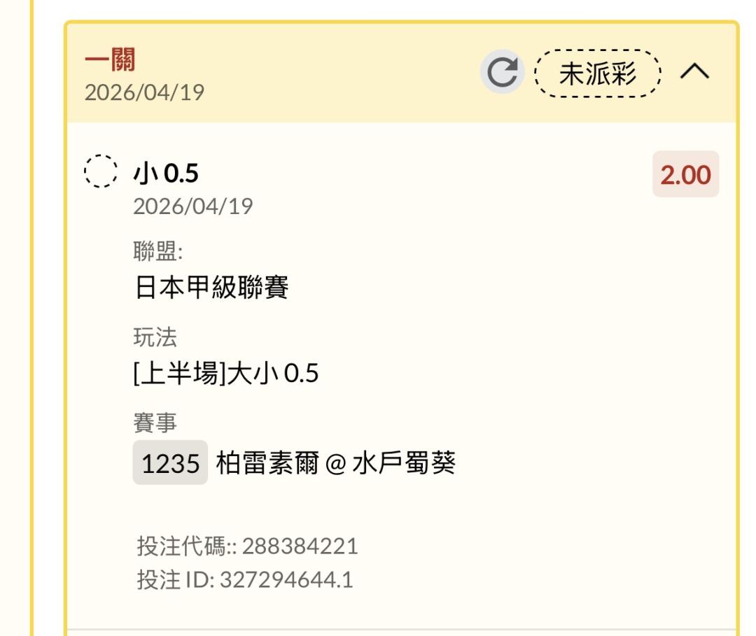 剛領3萬多得大哥,開賽前下上半0球,喵到直接跟爆,結果跟到幸福