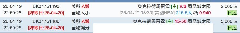 >> 4/20日NBA1場參考(國際 連贏2天 5過4^^)