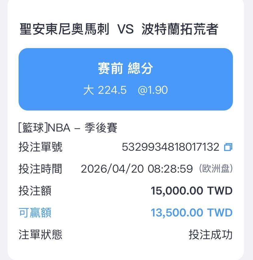 盤口並未刻意壓低,市場對兩隊進攻端仍有一定期待。雖然是季後賽首戰,但馬刺本季本身就具備快速轉換與高效率進攻能力,只要比賽節奏被帶快,這條分數線並不算難追。拓荒者同樣擁有年輕陣容與推進速度,整體具備打出&nbsp...恕刪