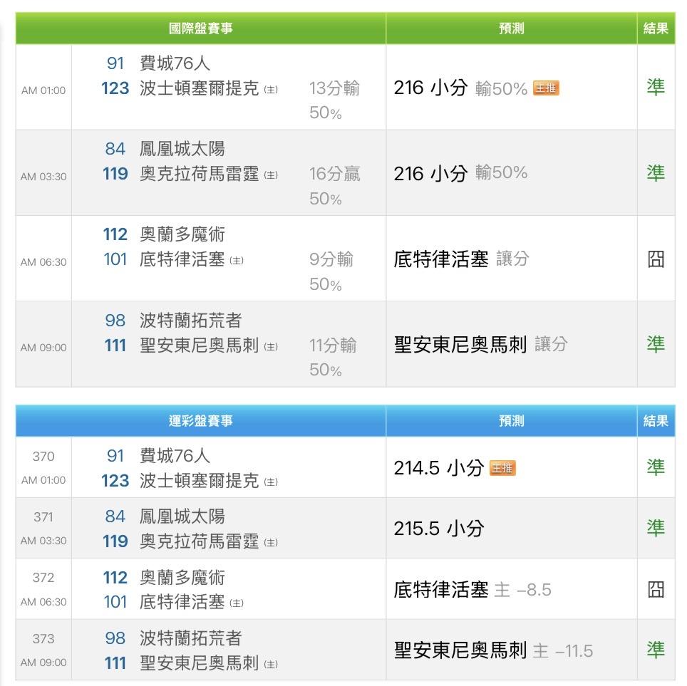 運彩盤賽事 預測 結果