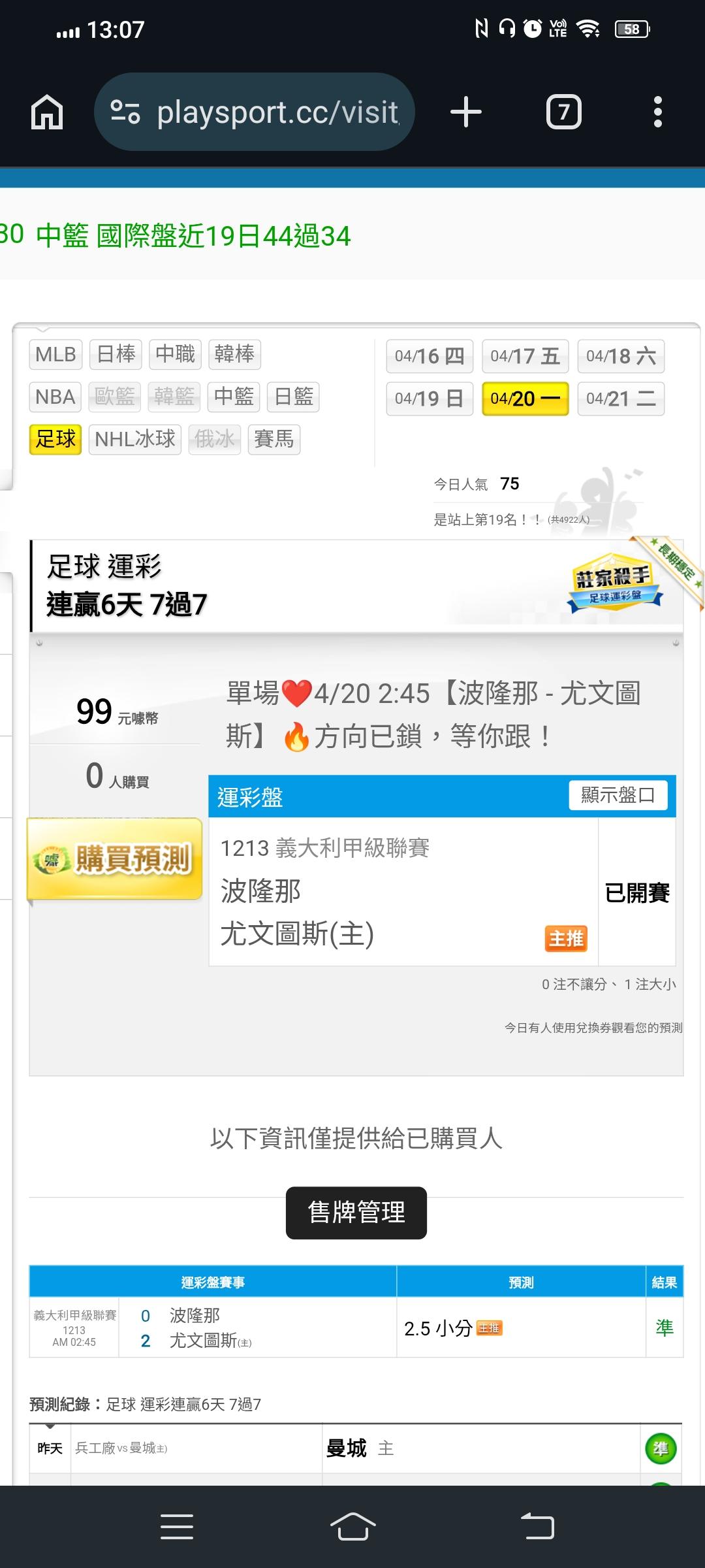 足球 >> 連贏7天8場全收,單場❤️4/21 3:00【西漢姆-水晶宮】🔥方向已鎖,等你跟!