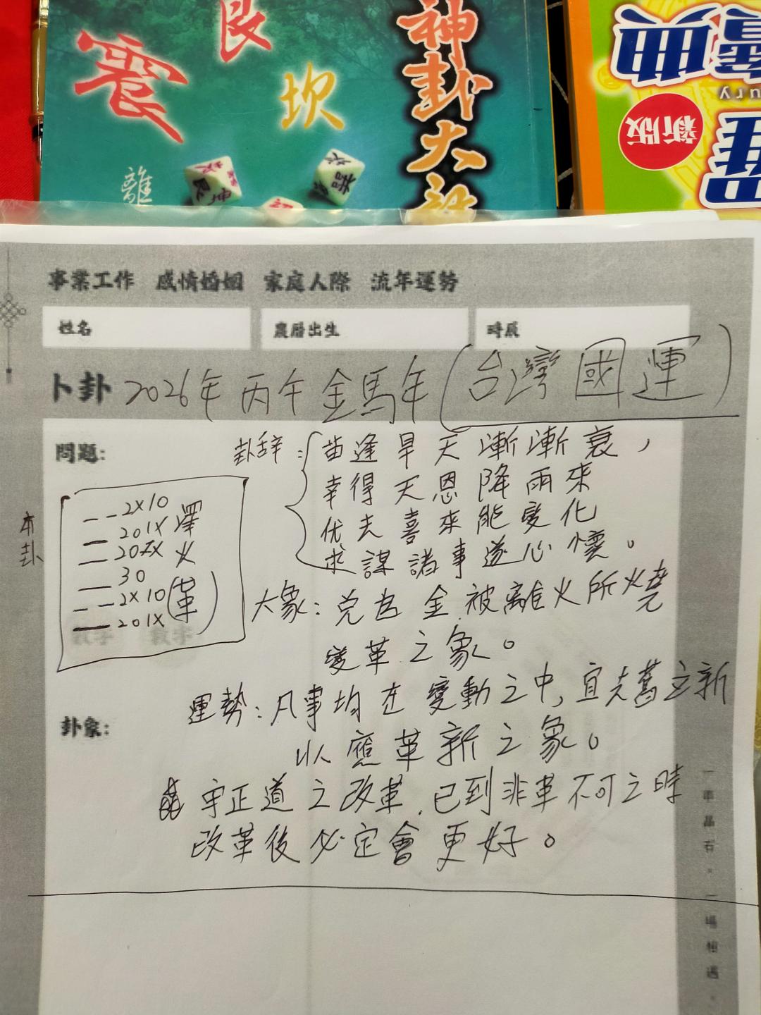 剛剛突然翻出今年過年的時候我用易經卜卦台灣的國運,這個卦象其實講的很有道理,台灣已經到非改革不可了,改革之後必定會更好