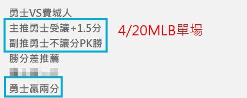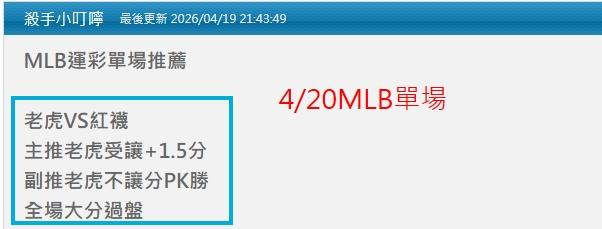 今天4/20小叮嚀推薦2場單場:
