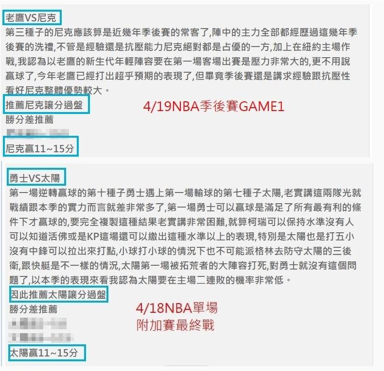 小叮嚀有明天3場季後賽推薦&勝分差推薦